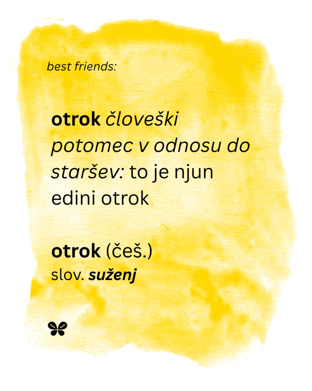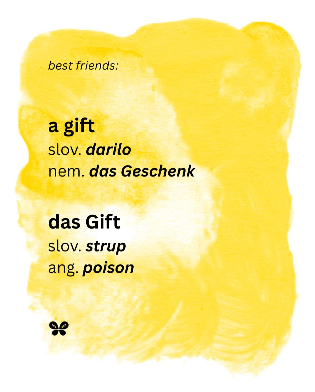 Besede ali besedne zveze, ki imajo v dveh ali več jezikih enako ali podobno izrazno podobo, a drugačen pomen.